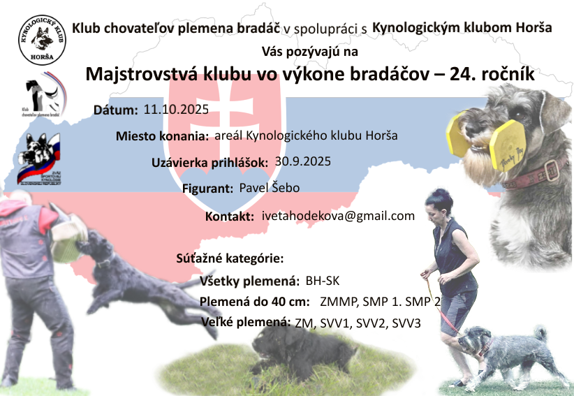 - Klubové Majstrovstvá vo výkone bradáčov 11.10.2025 (so zápisom Skúšky všestranného výcviku podľa Národného skúšobného poriadku)